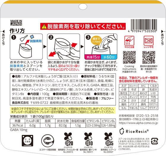 アルファー食品 安心米 しょうがご飯(玄米入り) 1個※軽(ご注文単位1個)【直送品】