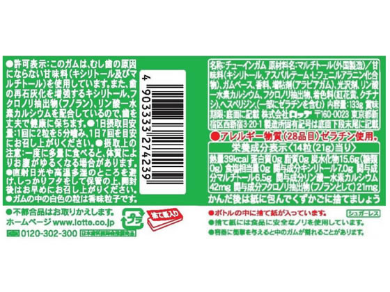 ロッテ キシリトールガム ライムミント ファミリーボトル×6個 1箱※軽(ご注文単位1箱)【直送品】