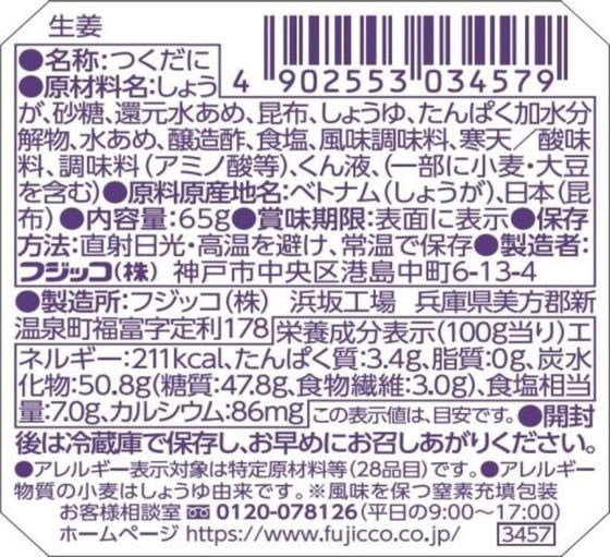 フジッコ ふじっ子煮 生姜こんぶ 65g 1個※軽(ご注文単位1個)【直送品】