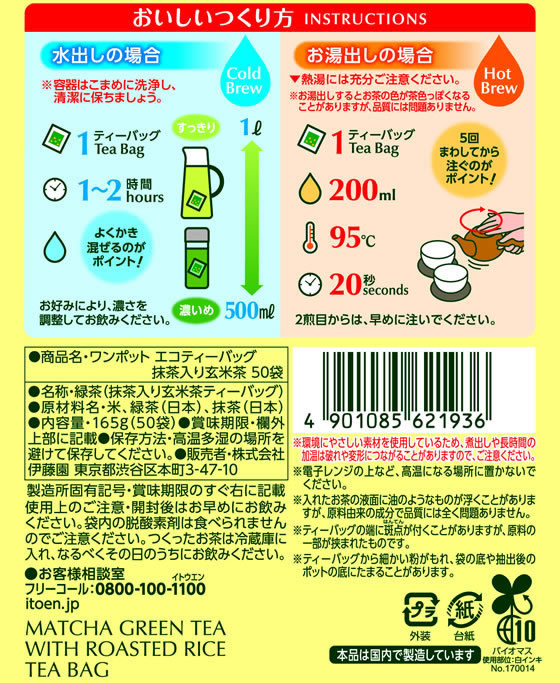 伊藤園 ワンポット エコティーバッグ玄米茶 50袋×10箱 1箱※軽(ご注文単位1箱)【直送品】