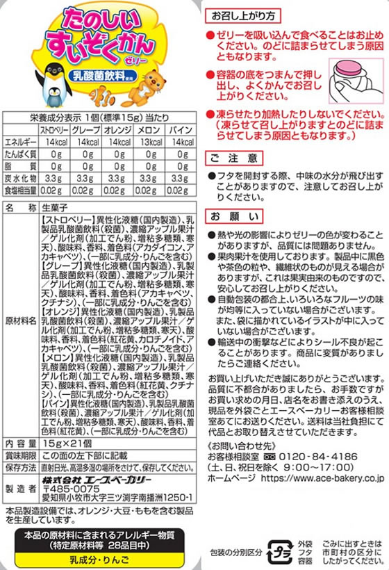 エースベーカリー たのしいすいぞくかんゼリー 21個 1袋※軽(ご注文単位1袋)【直送品】