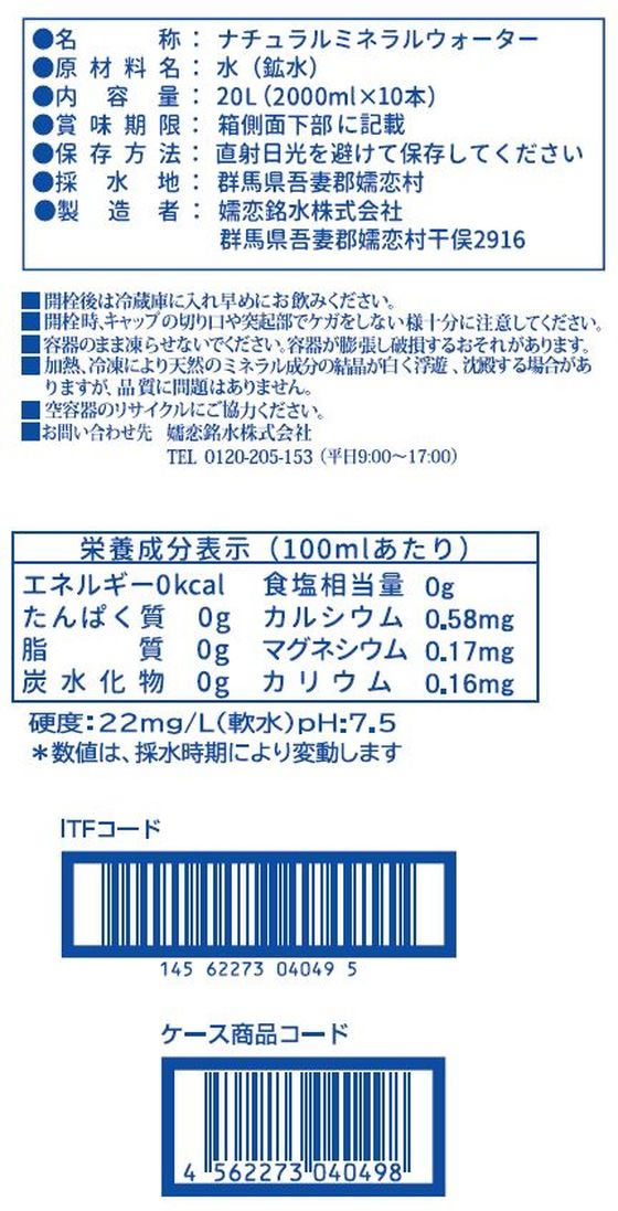 嬬恋銘水 嬬恋の天然水 ラベルレス 2L×10本 TMW-TG2FR 1箱※軽(ご注文単位1箱)【直送品】