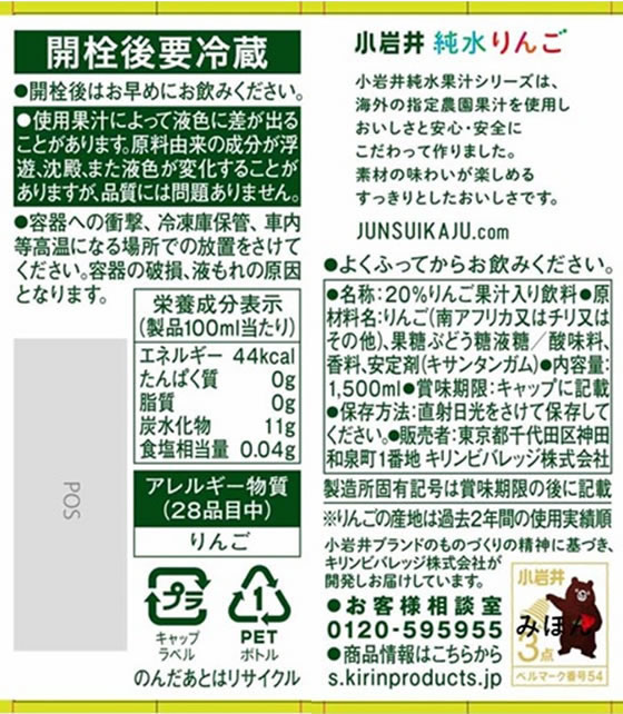 キリン 小岩井 純水りんご 1.5L 1本※軽(ご注文単位1本)【直送品】