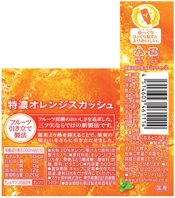 アサヒ飲料 三ツ矢特濃オレンジスカッシュ 500mL 1本※軽(ご注文単位1本)【直送品】