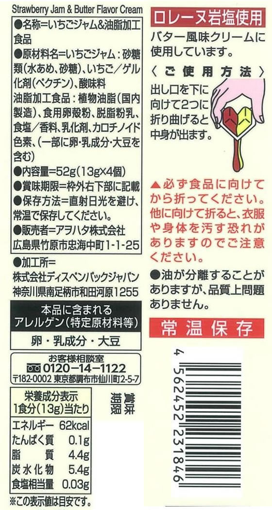 アヲハタ ヴェルデ パキッテ イチゴ&バター風味クリーム 4個入 1袋※軽(ご注文単位1袋)【直送品】