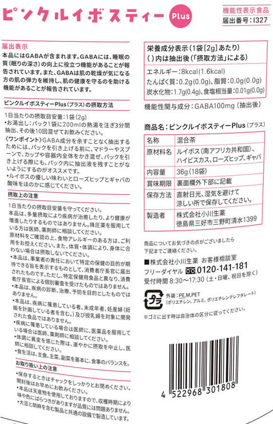 小川生薬 ピンクルイボスティーPlus 18袋 1個※軽(ご注文単位1個)【直送品】