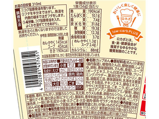 明星食品 ロカボNOODLES 濃厚コク旨豚骨 56g 12食 1個※軽(ご注文単位1個)【直送品】