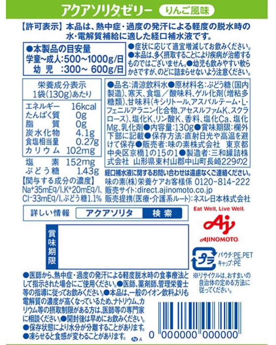 味の素 アクアソリタゼリー りんご風味 130g 1個※軽(ご注文単位1個)【直送品】