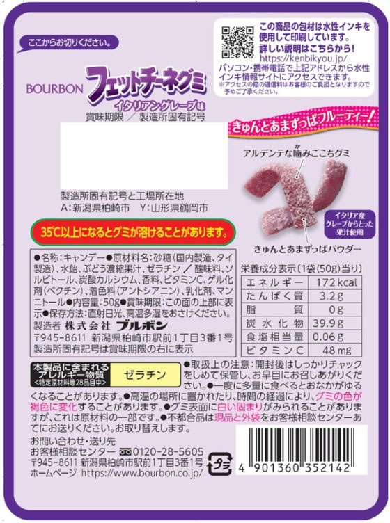 ブルボン フェットチーネグミ イタリアングレープ味 1個※軽(ご注文単位1個)【直送品】