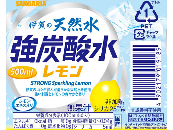 日本サンガリア 伊賀の天然水 強炭酸水 レモン 500ml×24本 1箱※軽(ご注文単位1箱)【直送品】