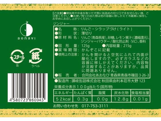 あおなび あおもりりんご ジンジャー 215g 1缶※軽(ご注文単位1缶)【直送品】