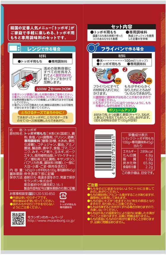 モランボン トッポギ 1セット入 145g 1個※軽(ご注文単位1個)【直送品】