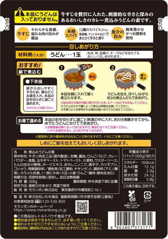 モランボン 牛すじ入り カレー煮込みうどんの素 300g 1個※軽(ご注文単位1個)【直送品】