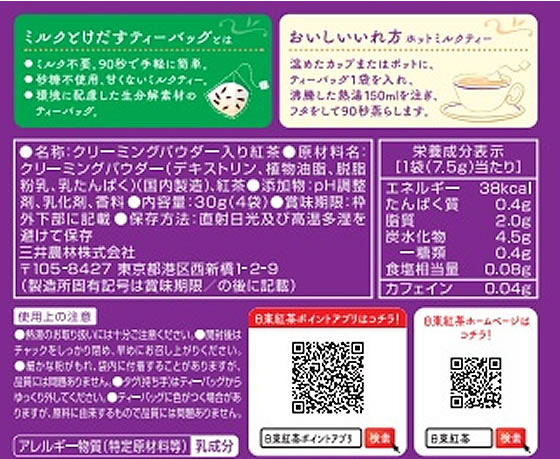 三井農林 日東紅茶 ミルクとけだすティーバッグ アールグレイ 4袋 1パック※軽(ご注文単位1パック)【直送品】