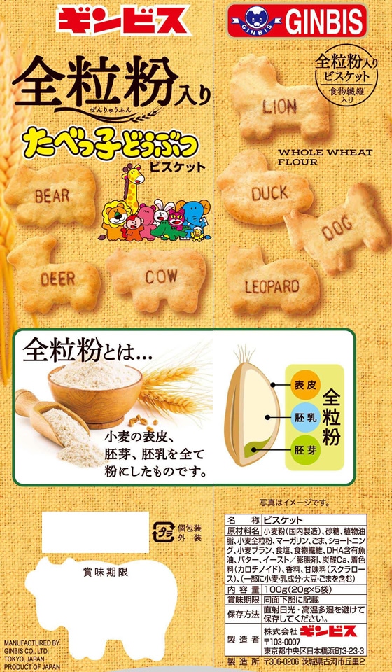 ギンビス 全粒粉入り たべっ子どうぶつ 5P 1パック※軽(ご注文単位1パック)【直送品】