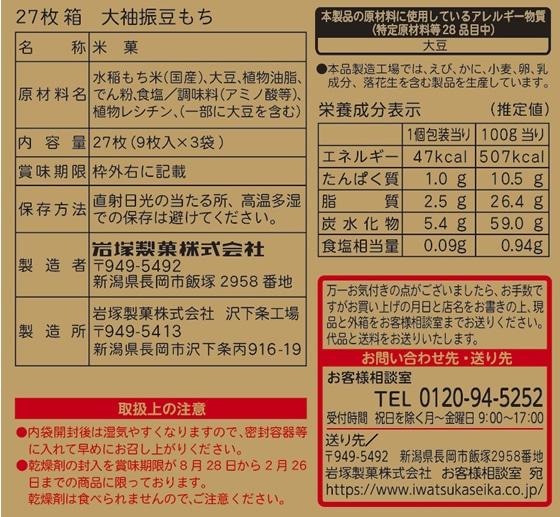岩塚製菓 大袖振豆もち 箱 9枚×3袋入 1箱※軽(ご注文単位1箱)【直送品】