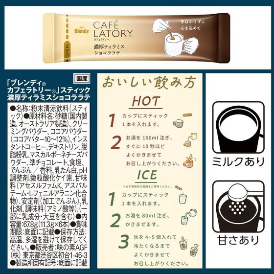 AGF ブレンディ スティック 濃厚ティラミスショコララテ 6本 1箱※軽(ご注文単位1箱)【直送品】