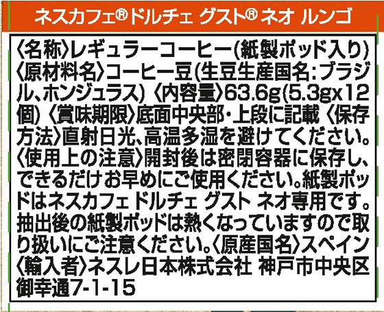 ネスレ ネスカフェ ドルチェ グスト ネオ ルンゴ 12杯分 1袋※軽(ご注文単位1袋)【直送品】