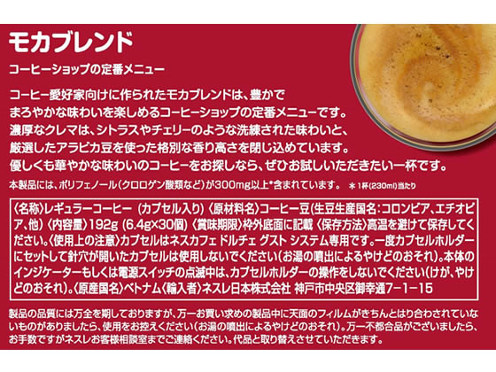 ネスレ ネスカフェ ドルチェ グスト 専用カプセル モカブレンド 30杯分 ※軽(ご注文単位)【直送品】