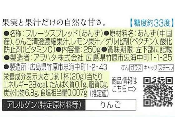 アヲハタ まるごと果実 あんず 250g ※軽(ご注文単位)【直送品】