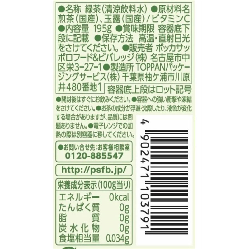 ポッカサッポロ 旨みまろやか緑茶 195g×30本 1箱※軽(ご注文単位1箱)【直送品】