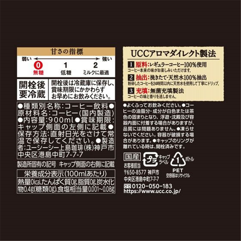 UCC 職人の珈琲 無糖 PET 900mL 12本 1箱※軽(ご注文単位1箱)【直送品】