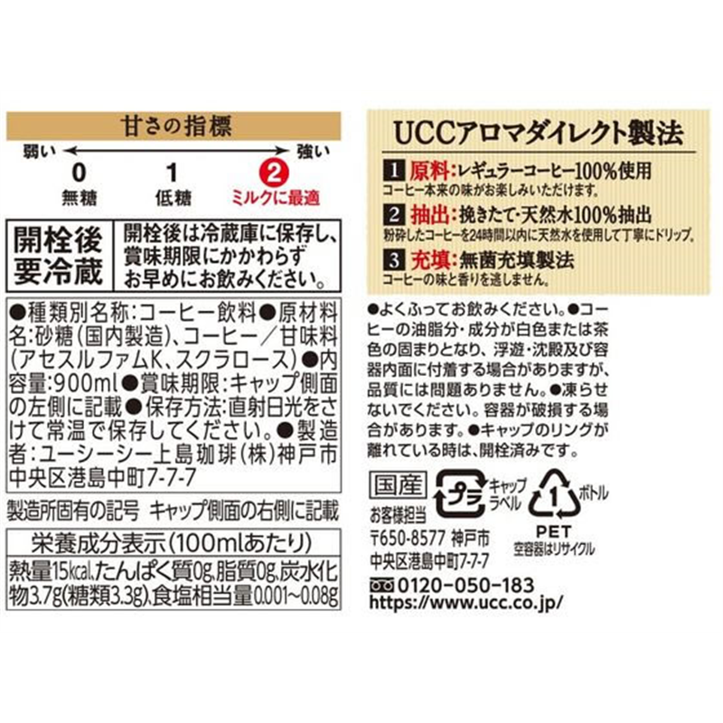 UCC 職人の珈琲 ミルクに最適 PET 900mL 12本 1箱※軽(ご注文単位1箱)【直送品】