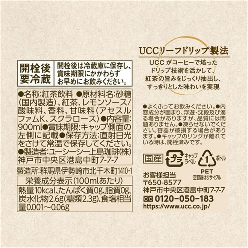 UCC 紅茶の時間 ティーウィズレモン 低糖 PET 900mL 1本※軽(ご注文単位1本)【直送品】