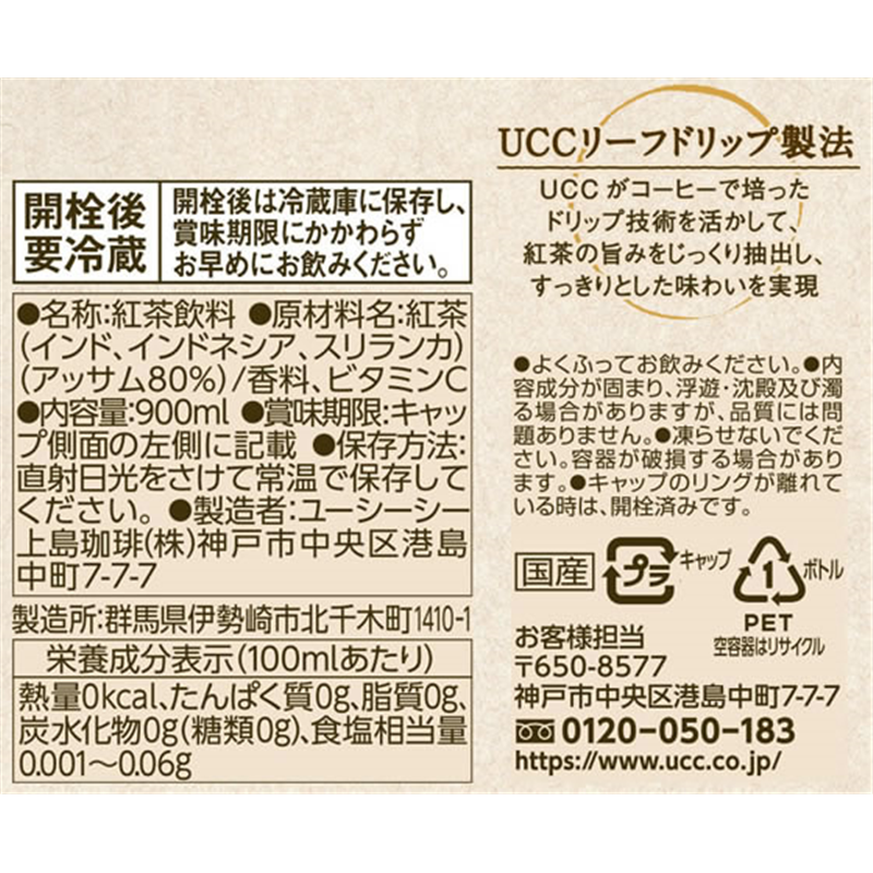 UCC 紅茶の時間 ストレートティー 無糖 ラベルレスボトル 900mL 12本 1箱※軽(ご注文単位1箱)【直送品】