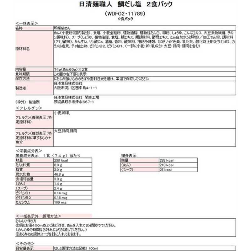 日清食品 日清麺職人 鯛だし塩 2食パック 1袋※軽(ご注文単位1袋)【直送品】