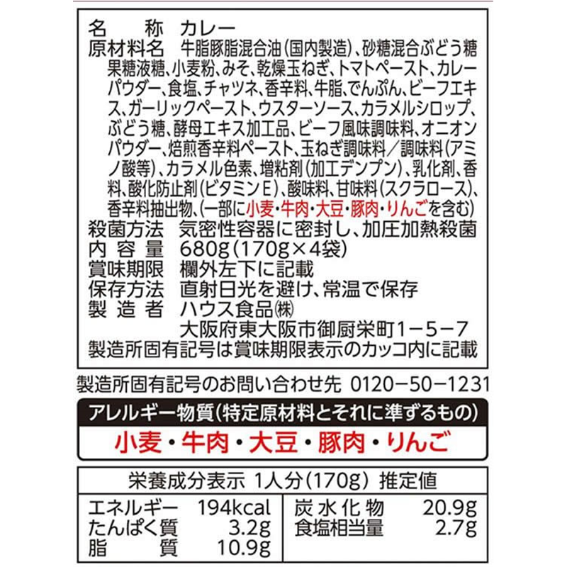 ハウス食品 プロクオリティ カレー 中辛 4袋 1パック※軽(ご注文単位1パック)【直送品】