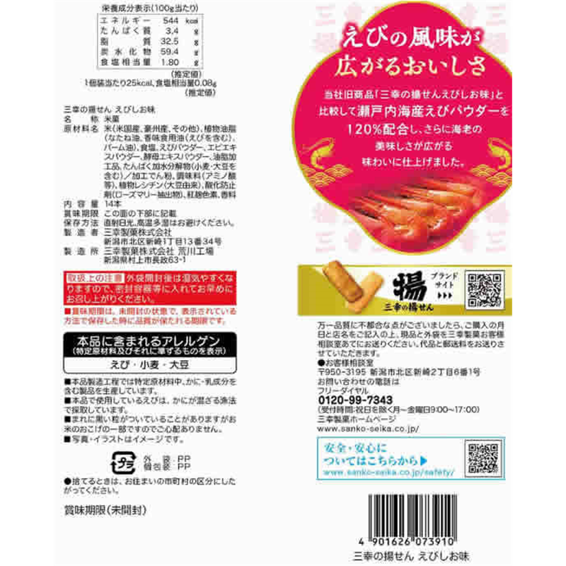 三幸製菓 三幸の揚げせん えびしお味 14本 1袋※軽(ご注文単位1袋)【直送品】