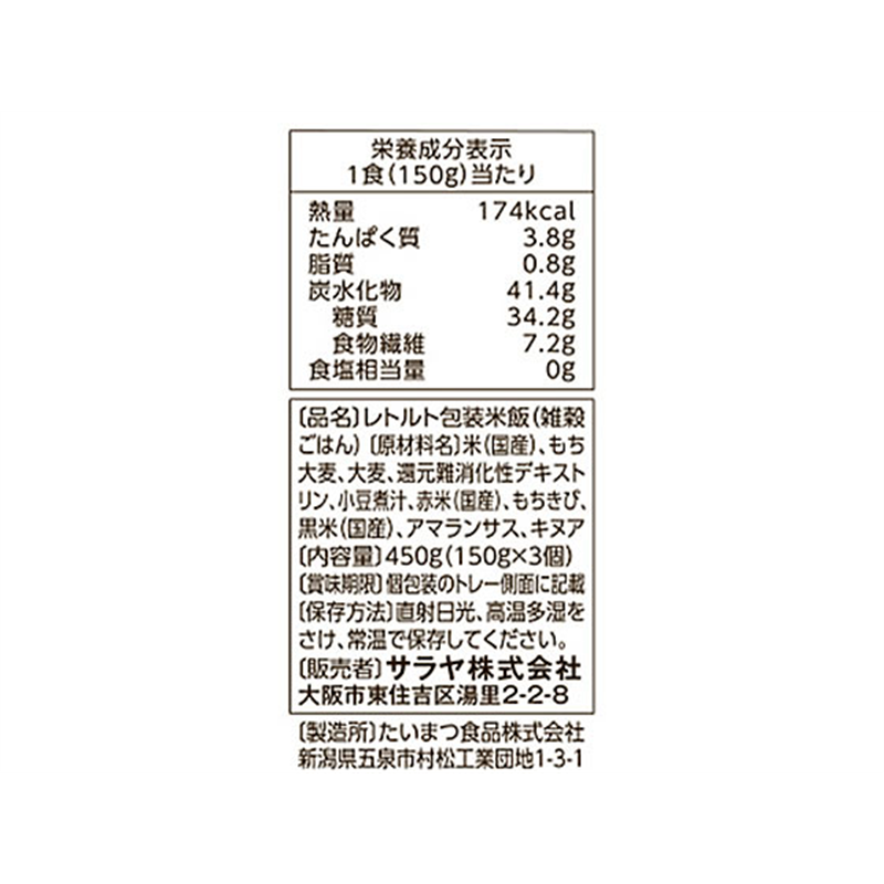 サラヤ へるしごはん雑穀 150g×3食 1パック※軽(ご注文単位1パック)【直送品】