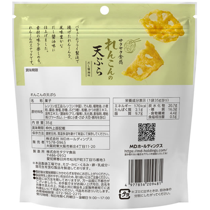 MDホールディングス れんこんの天ぷら 1袋※軽(ご注文単位1袋)【直送品】