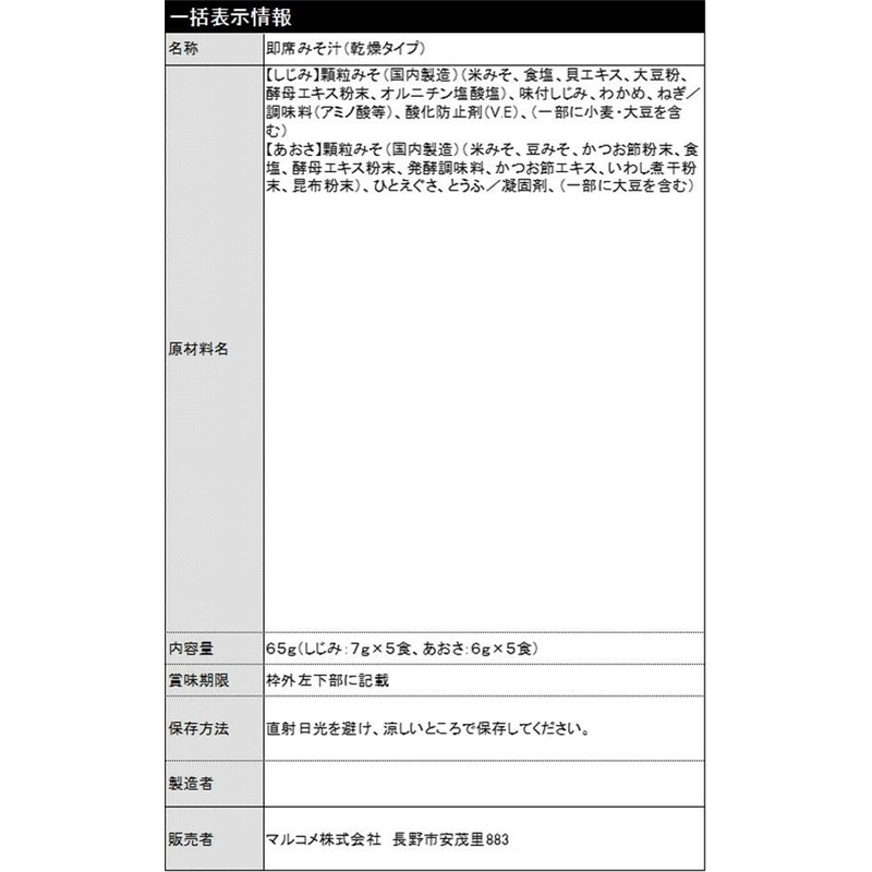 マルコメ 業務用生みそ汁しじみ100食 131506 1袋※軽(ご注文単位1袋)【直送品】