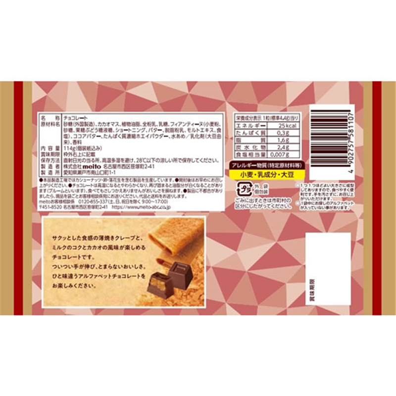 meito アルファベットチョコレート サクッとクレープ 114g 1袋※軽(ご注文単位1袋)【直送品】
