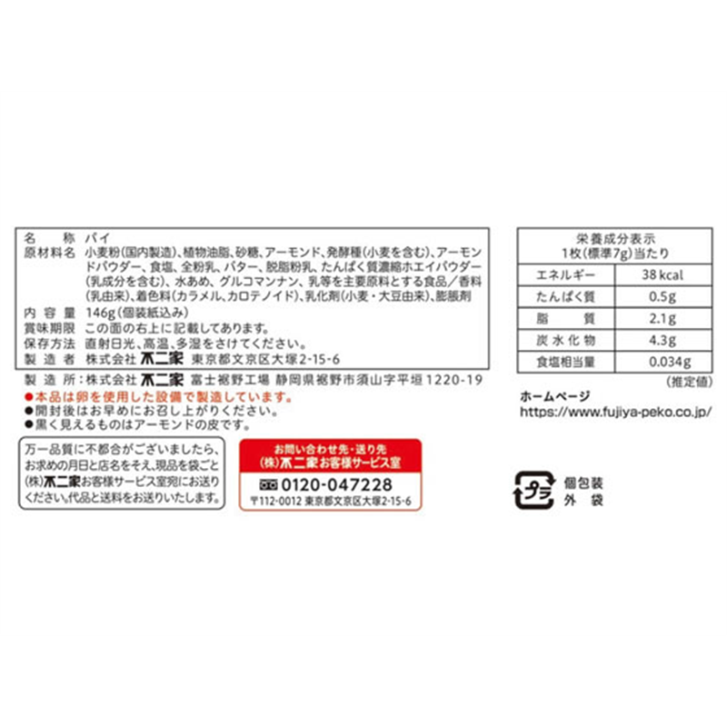不二家 ホームパイ アーモンドクッキー 1袋※軽(ご注文単位1袋)【直送品】
