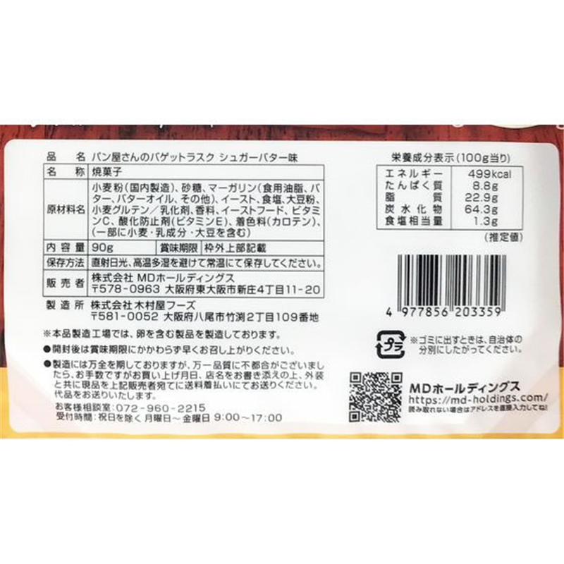 MDホールディングス パン屋さんのバゲットラスク シュガーバター味 1個※軽(ご注文単位1個)【直送品】