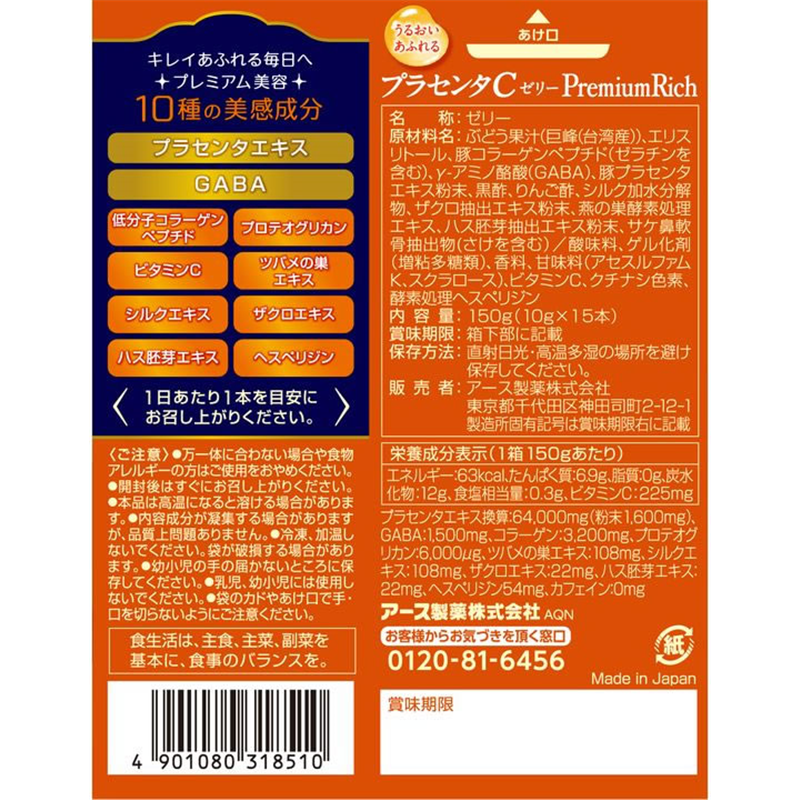 アース製薬 プラセンタCゼリー プレミアムリッチ 巨峰味 15本 1個※軽(ご注文単位1個)【直送品】