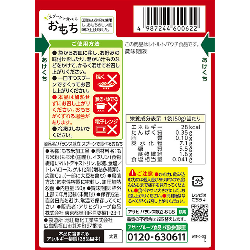 アサヒグループ バランス献立スプーンで食べるおもち 50g 1個※軽(ご注文単位1個)【直送品】
