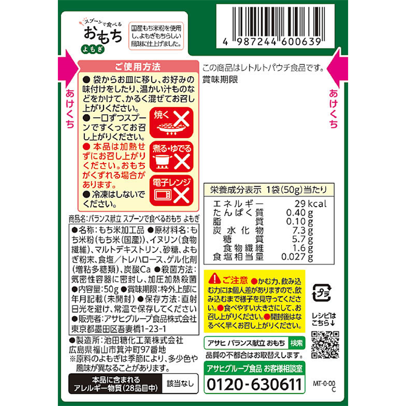 アサヒグループ バランス献立スプーンで食べるおもち よもぎ50g 1個※軽(ご注文単位1個)【直送品】