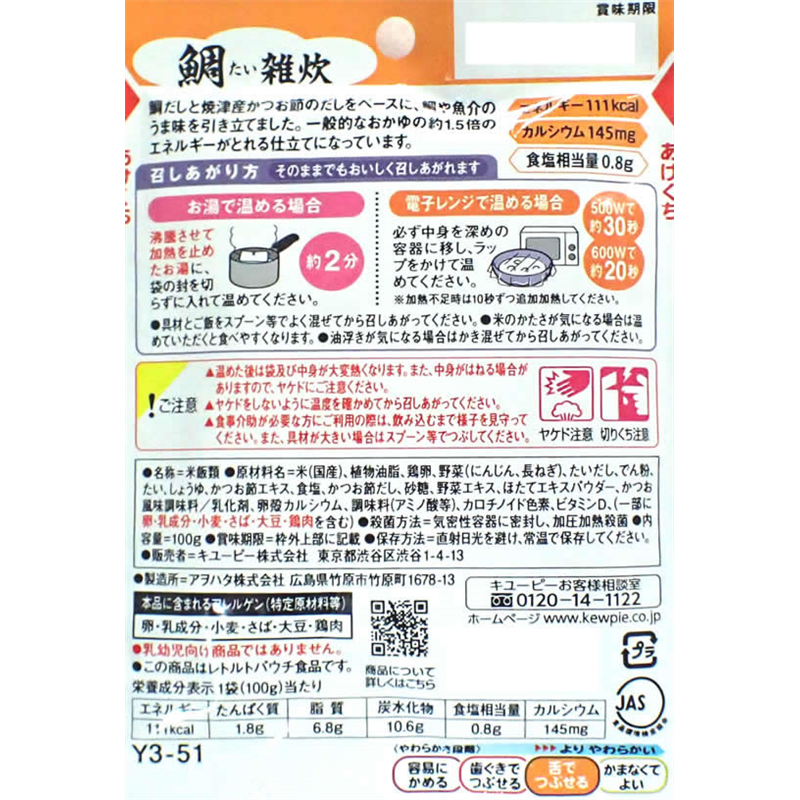 キューピー やさしい献立 鯛雑炊 100g 1個※軽(ご注文単位1個)【直送品】