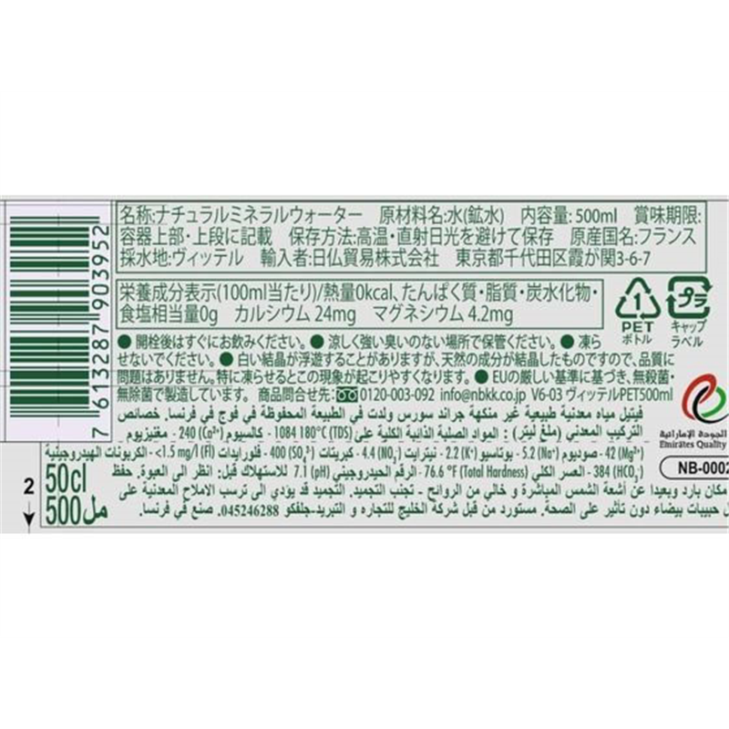 ヴィッテル PET 500mL V6-03 1本※軽(ご注文単位1本)【直送品】