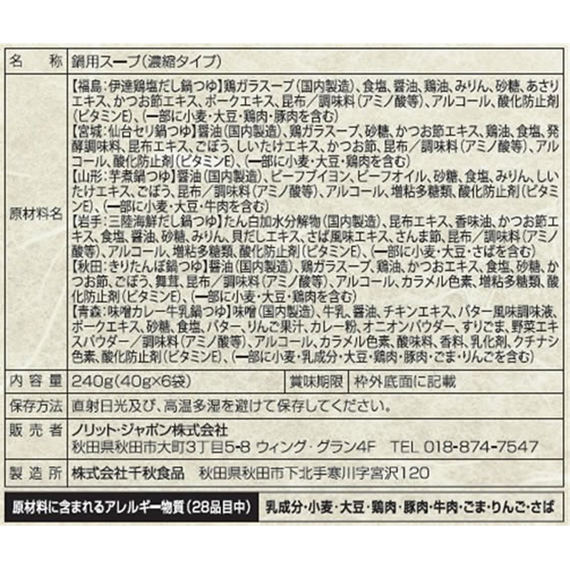 ノリット・ジャポン 東北六県鍋つゆ 1箱※軽(ご注文単位1箱)【直送品】