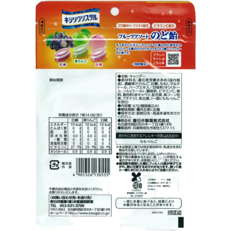 春日井製菓 キシリクリスタル フルーツアソートのど飴 67g 1袋※軽(ご注文単位1袋)【直送品】