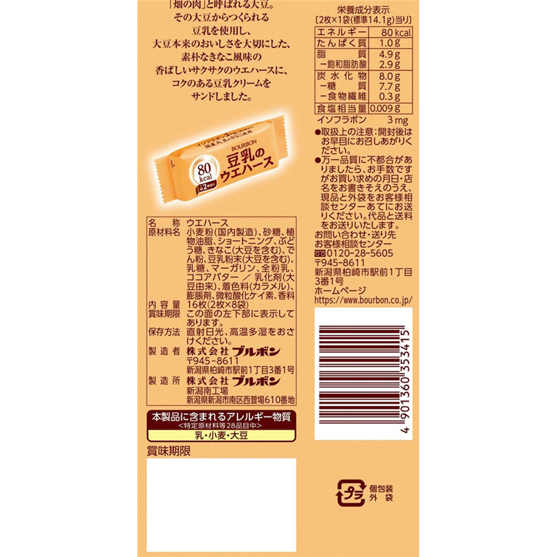 ブルボン 豆乳のウエハース 16枚 1パック※軽(ご注文単位1パック)【直送品】