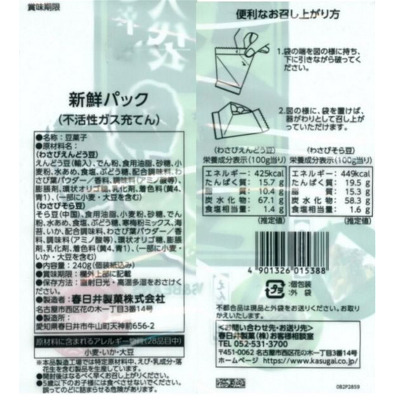 春日井製菓 グリーン豆 大袋わさび豆 240g 1袋※軽(ご注文単位1袋)【直送品】