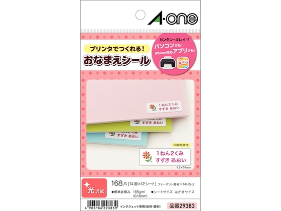 エーワン お名前シール 光沢紙 14面 12シート 29383 1冊(ご注文単位1冊)【直送品】