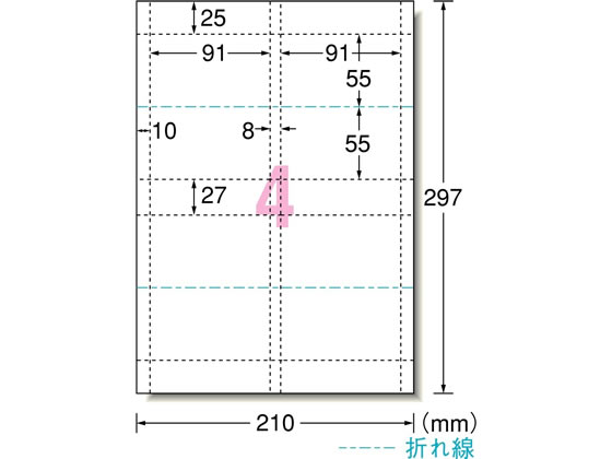 エーワン マルチカード 名刺長辺2つ折タイプ 4面 A4 100シート 51080 1冊(ご注文単位1冊)【直送品】