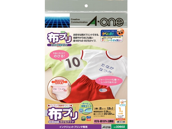 エーワン 布プリ のびる アイロン接着タイプ A4 1面 2シート 33602 1冊(ご注文単位1冊)【直送品】